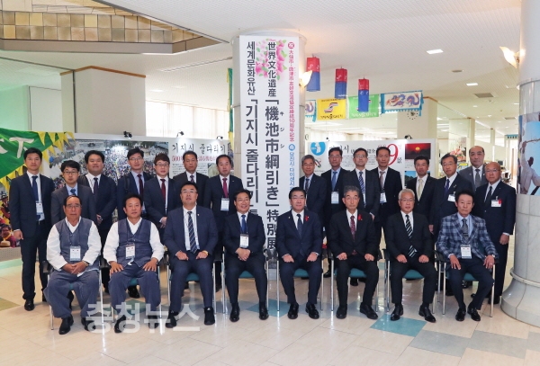 이날 오후 2시 30분 니시센보쿠지소에서는 기지시줄다리기 줄 모형과 줄틀 모형, 농기, 줄다리기 관련 책자 등 60여 점이 전시되는 기지시줄다리기 특별전 개막식이 열렸다.