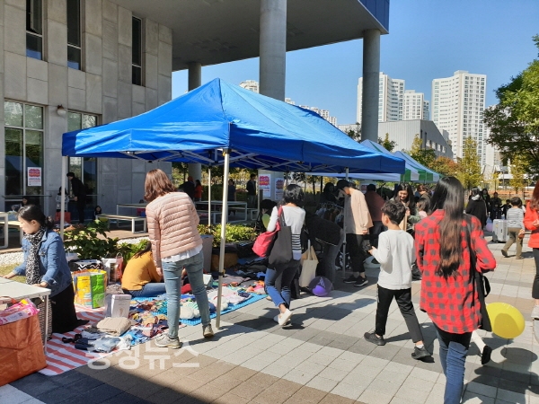 이날 행사에서는 가정에서 쓰지 않는 육아용품 등을 이웃과 나누는 나눔 장터와 비누 만들기, 아이클레이, 가방 만들기, 오색끈 만들기 등 다양한 체험활동이 마련돼 눈길을 끌었다.