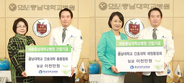 충남대 간호대학 총동창회와 충남대병원 재원동창회도 이날 세종충남대병원 건립기금 2000만 원을 각각 기부했다.