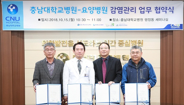 충남대병원(원장 송민호)은 15일 행정동 3층 세미나실에서 시니어스요양병원(원장 곽상태), 평화요양병원(원장 홍양의), 패밀리요양병원(대표원장 박성규)과 감염관리에 관한 업무지원 협약을 체결했다. 저작권자 © 충청뉴스 무단전재 및 재배포 금지 충청뉴스 다른기사 보기 기사가 마음에 드셨나요? 충청뉴스 좋은 기사 후원하기 1,000원 3,000원 5,000원 10,000원 30,000원 50,000원 직접입력 비회원 약관동의하기 ※ 소중한 후원금은 더 좋은 기사를 만드는데 쓰겠습니다.