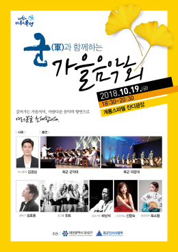 대전 유성구(구청장 정용래)는 오는 19일 저녁 6시 30분 계룡스파텔 잔디광장에서 ‘군과 함께하는 가을음악회’를 개최한다고 15일 밝혔다.