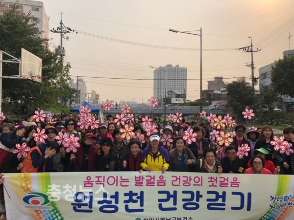 충남 천안시 동남구보건소는 16일 자연 속에서 이웃과 걷기를 통해 화합 및 건강 생활 실천을 도모하는 ‘제16차 원성천 가을 건강걷기’ 행사를 원성천에서 진행했다고 밝혔다.