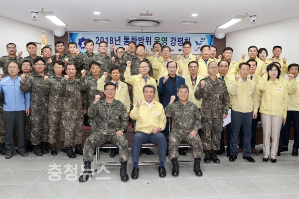 충남 보령시는 지난 17일 오후 시청 중회의실에서 김동일 시장과 이명진 32부사단장 등 관계자 50여 명이 참석한 가운데 2018년도 통합방위 운영 강평회를 개최했다.