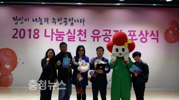 KGC인삼공사고려인삼창과 가수 정필옥씨는 지난 10일 충남도서관 대강당에서 열린 2018 나눔실천 유공자 포상식에서 충청남도지사 표창과 충남사회복지공동모금회장 표창을 수상했다.