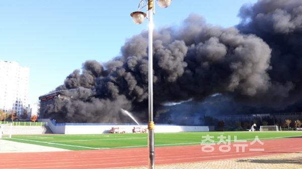 19일 오후 3시 24분경 대전 서구 관저동 관저다목적체육관 건립 공사현장에서 큰 불이 났다.