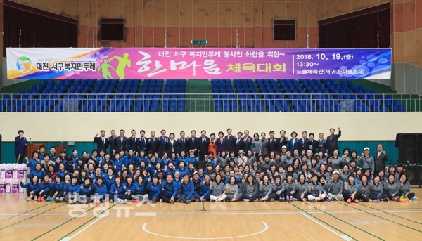 대전 서구 복지만두레 운영협의회(회장 이택용)는 19일 도솔 다목적체육관에서 복지만두레 회원 300여 명이 참여한 가운데 한마음체육대회를 열었다.