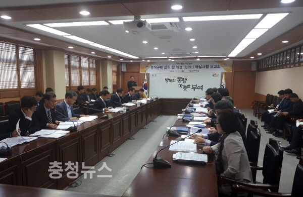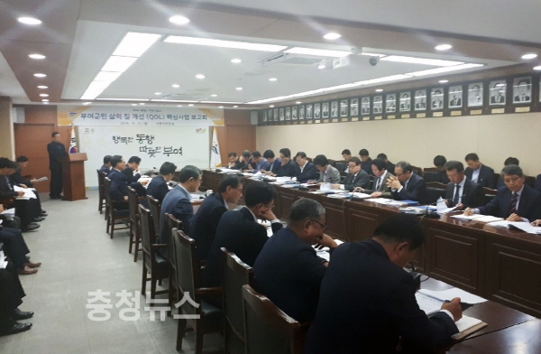 충남 부여군은 22일 부여군청 서동브리핑실에서 ‘부여군민 삶의 질 개선 핵심사업 보고회’를 가졌다.