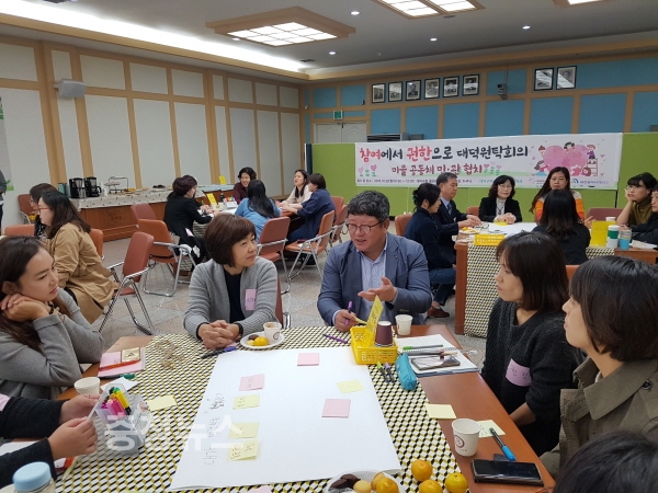 대덕구마을공동체네트워크는 22일 대덕구청 중회의실에서 ‘참여에서 권한으로, 마을공동체 민관협치 원탁회의’ 모습