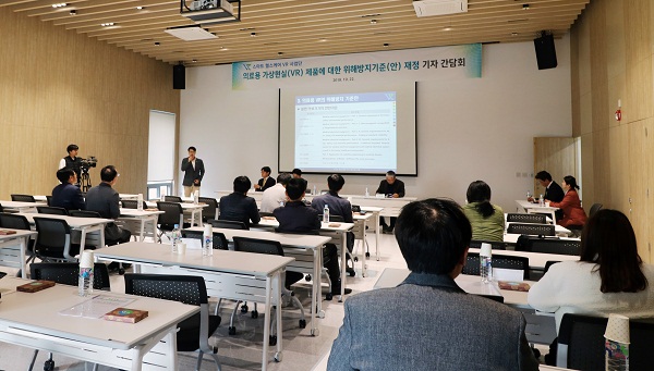 실제로 HMD(Head-Mounted Display)형 VR 제품의 사용은 안구 피로와 건조, 두통과 어지러움, 가상현실과 현실의 구분 어려움 등의 안전적 위험과 안경 착용 시 사용의 어려움, 접촉면의 오염 등의 불편이 지적되고 있다. 더욱이 환자는 일반인보다 VR 제품의 부작용에 더 취약할 수밖에 없다. 따라서 의료용 VR 제품은 엄격하고 객관적인 안전성 확보가 무엇보다 중요하지만, 현재까지 표준화된 안전성 인증기준이 없어 제조 회사마다 서로 다른 기준으로 제품을 개발하고 있는 실정이다.