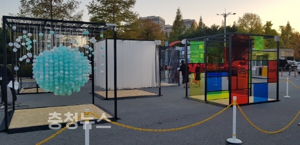 한남대 융합디자인전공 학생들이 대전시의 ‘2018년 공공미술 프로젝트’에 참여해 대전엑스포시민광장에 작품을 전시 중이다.