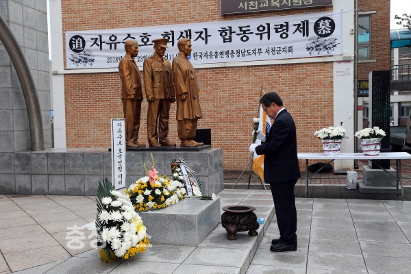 한국자유총연맹 서천지회(지회장 김종문) 주관으로 열린 이날 위령제에는 노박래 서천군수를 비롯해 자유수호 희생자 유가족 및 각급 기관단체장, 지역주민 등 200여명이 참석한 가운데, 국민의례, 자유수호 희생자에 대한 묵념, 종교의식, 추념사, 추도사, 헌사, 조시, 헌화 분향 순으로 진행됐다.