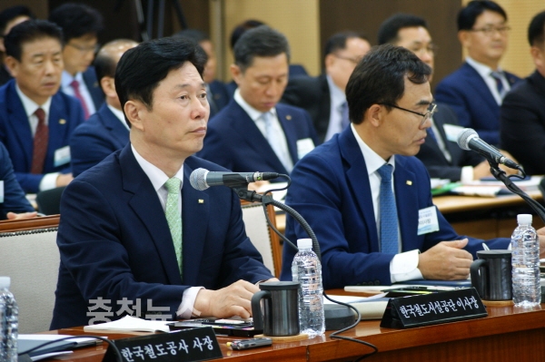 24일 오전 한국철도시설공단 본사에서 열린 국회 국토교통위원회 국정감사에서 김상균 한국철도시설공단 이사장은 “철도사업 추진 과정에서 안전과 품질을 최우선 과제로 삼아 소중한 인명과 재산을 보호하는데 한치의 소흘함이 없도록 하겠다”고 밝혔다.