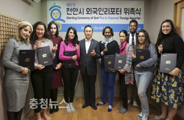 충남 천안시가 지난 24일 오후 외국인의 시각으로 천안을 생생하게 알릴 ‘2기 외국인 리포터’ 11명을 시정 홍보꾼으로 위촉했다.