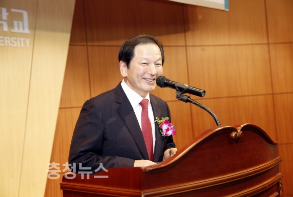 송용천 이사장은 격려사에서 “선문대는 개인보다는 국가와 세계를 위하는 인재를 양성하기 위해 세워졌다. 애천(愛天)·애인(愛人)·애국(愛國)의 건학이념을 중심으로 교육의 넓이를 확대하고 깊이를 다져 나가야 한다”고 강조했다. 또한 “선문대의 발전을 위해 선학학원 법인도 지원을 아끼지 않을 것이다. 구성원 모두가 학교의 발전을 위해 최선을 다해주길 바란다”고 말했다.