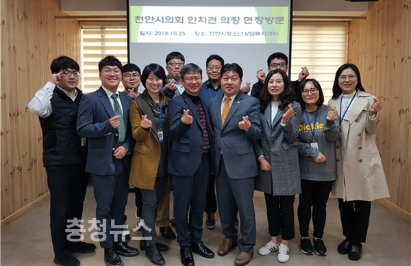 25일 천안시의회 인치견 의장이 천안시청소년상담복지센터(센터장 최완열)를 방문해 현장의 목소리를 들었다.