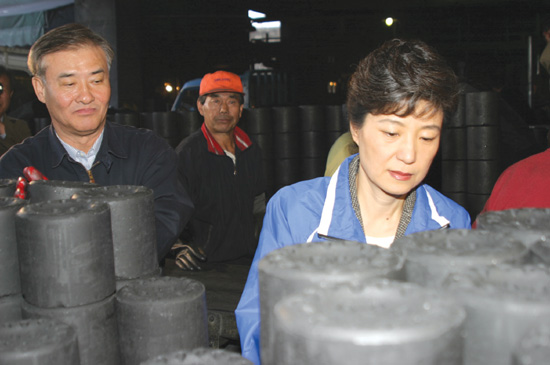 정당 대표의 이벤트성 행사에 필수코스는 역시 민생 현장 탐방이다 .박대표 역시 서민경제살피기 첫 방문지로 대덕구 신대동 육림연탄공장을 찾았다. 박 대표는 직접 차량에 연탄을 옮겨 담으며 직원들과 이야기를 나눴다.
