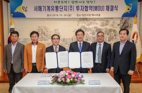 충남 당진시와 서해기계유통단지는 26일 당진시청에서 투자협약을 맺고 4만9,500㎡(약 1만5000평), 지상2층 14개동 규모로 공작기계와 산업기계 등을 유통하는 단지를 조성키로 했다.