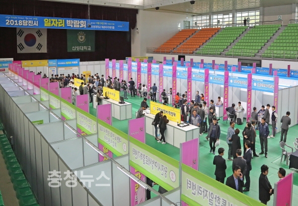 지난 24일 신성대학교 태촌아카데미홀에서 개최된 2018 당진시 일자리 박람회에 지역 향토기업 40개사와 복지시설 사업장 31곳, 구직자 1000여 명이 참석한 가운데 마무리 됐다.