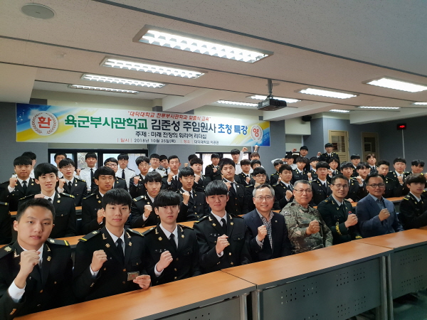 대덕대학교 군사학부 전투부사관과(학과장 허동욱교수)는 지난 25일 육군부사관학교 김준성 주임원사를 초청해“미래 전장의 워리어 리더십”주제로 전투부사관과 1~2학년 학생 80여명을 대상으로 특강을 실시했다.