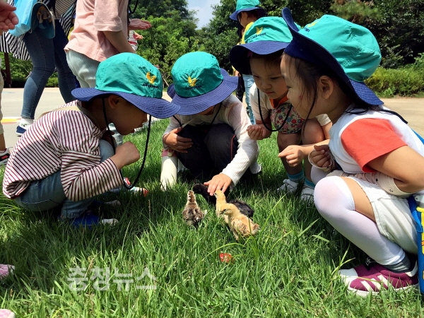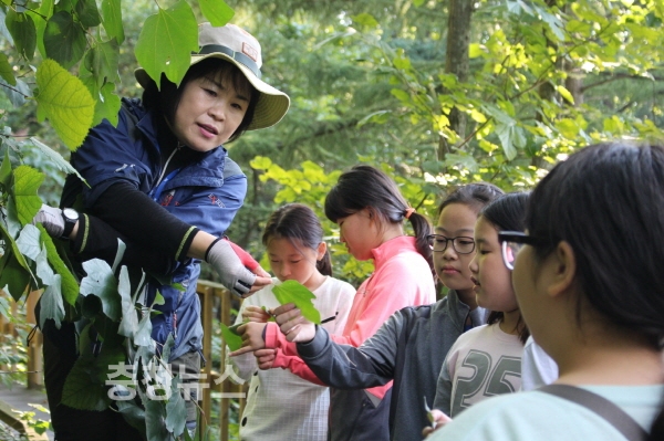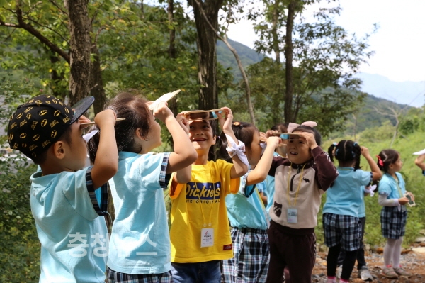 경북 칠곡군 석적읍 국립칠곡숲체원에서 유아들이 산림교육프로그램을 체험하고 있다