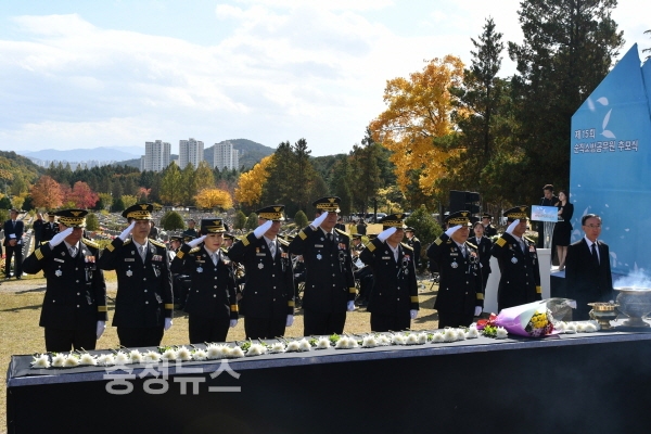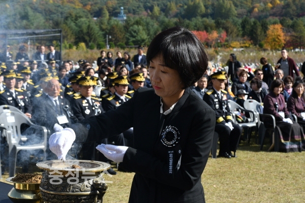 27일 국립대전현충원 소방관묘역에서 순직소방공무원 추모식 거행 (강윤진 청장 분향 모습)