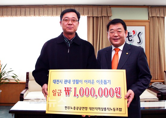 특히, 본 행사에 참석한 황인성 대전지역상용직노동조합위원장은 시 소속 상용직 조합원들의 소중한 마음을 담아 어려운 이웃지원을 위한 성금일백만원을 대전광역시에 전달하는 등 연말연시를 맞이하여 더불어 함께 사는 훈훈한 마음을 실천하였다.