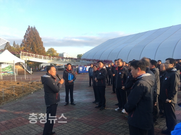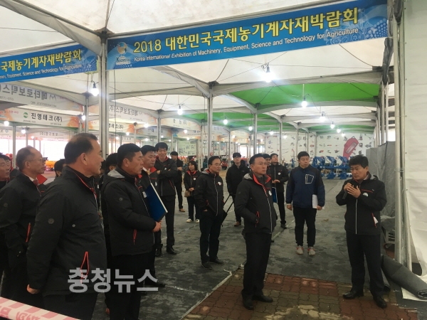 충남 천안시는 29일 ‘2018 대한민국 국제농기계자재박람회’ 행사가 열리는 삼거리공원에서 5급 이상 간부 114명이 참석한 가운데 박람회 준비 상황을 최종적으로 점검했다.