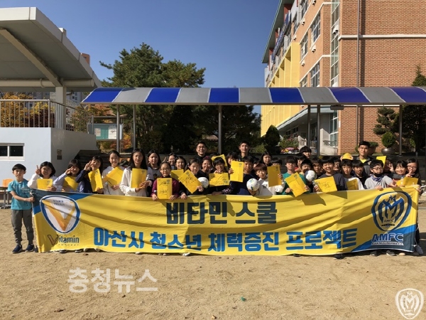 충남 아산시(시장 오세현)와 아산무궁화프로축구단(대표이사 박성관)은 청소년의 스포츠 참여기회 확대를 통한 건강하고 행복한 청소년 육성의 일환으로 지역사회 공유가치 창출 및 참여형 지역사회공헌 프로그램인 「찾아가는 청소년 비타민스쿨」을 창단 첫해인 지난해부터 현재까지 지역 청소년들의 전폭적인 참여와 호응으로 활발하게 실시하고 있다.