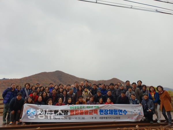 세종시교육청(교육감 최교진)은 지난 29일부터 30일까지 1박 2일간의 일정으로, 강원도 철원 DMZ생태평화공원과 소이산 생태숲길에서 「2018 학교장 평화통일교육 현장체험연수」를 운영했다고 밝혔다.