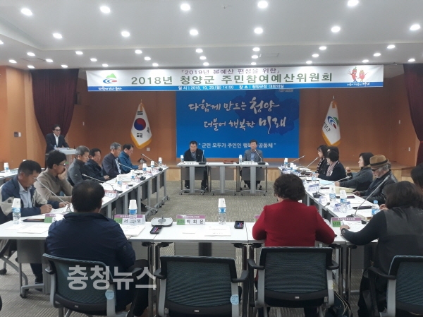 충남 청양군(군수 김돈곤)은 내년도 예산편성 과정에 주민의 참여를 보장하고 예산편성의 투명성과 공정성을 높이기 위해 지난 29일 군청 대회의실에서 주민참여예산위원회(위원장 이창영)을 개최했다.
