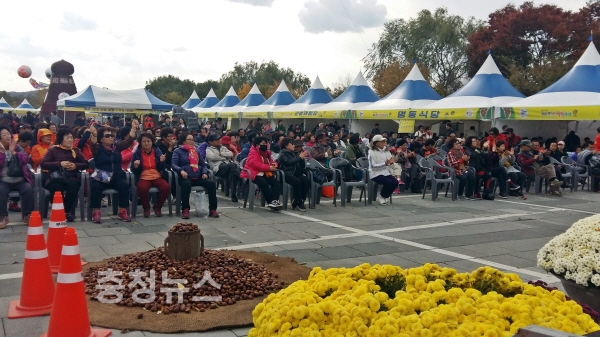 축제를 알리는 입구 대형조형물 앞에서는 사진을 찍는 가족단위 관람객이 줄을 이었고, 주무대 주변 설치된 밤 관련 전시장, 판매장, 먹거리장터, 체험장도 마찬가지였다.