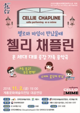 계룡시는 '2018 문예회관과 함께하는 방방곡곡 문화공감사업'의 일환으로 다음달 2일 계룡문화예술의전당 대공연장에서 마임과 함께하는 첼로연주 ‘첼리 채플린’을 개최한다.