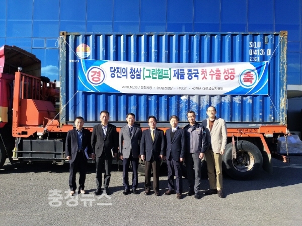 주식회사 당진청삼(대표 권기완)은 지난 8월 중국 위해시에 소재한 위해회결무역유한공사(대표 양뢰)와 공급계약을 체결한데 이어 지난 10월 30일 3만5000달러 상당의 초도 수주물량을 인천항으로 출하했다.
