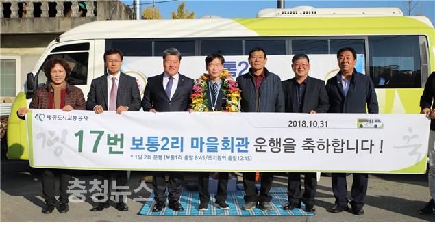 세종도시교통공사(사장 고칠진)는 31일 17번 버스 노선(조치원역↔보통1리)의 운행경로를 일부 조정하여 1일 2회 보통2리를 경유하도록 하고 개통식을 개최했다고 밝혔다.