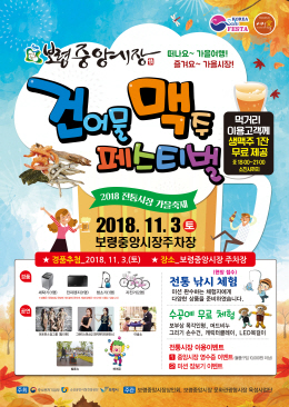 충남 보령시는 정부의 2018 코리아세일페스타에 발맞춰‘떠나요~가을여행!, 즐겨요~ 가을시장’이란 주제로 오는 2일에는 금토 야시장 ‘불야성’ 과 3일에는 ‘건어물, 맥주 페스티벌’을 개최한다고 밝혔다.