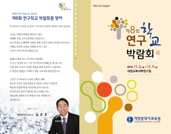 대전시교육청(교육감 설동호)은 5일부터 9일까지 5일간, 대전교육과학연구원에서 2018학년도 ‘제8회 연구학교 박람회’를 개최한다고 2일 밝혔다.