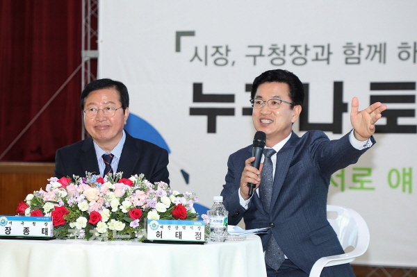 2일 서구에서 열린 시장-구청장과 함께 하는 자치구 순회 ‘누구나 토론회’에서다.