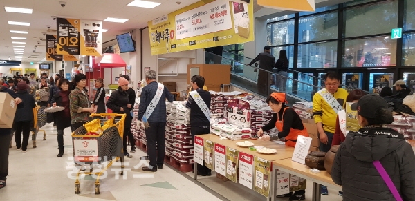 이번 판촉행사에서는 마트를 찾는 구매고객을 대상으로 행사기간 중에 떡메치기 이벤트와 홍보용 해나루쌀을 증정하는 등 해나루쌀의 우수성까지 알려 소비자들에게 눈길을 끌었다.