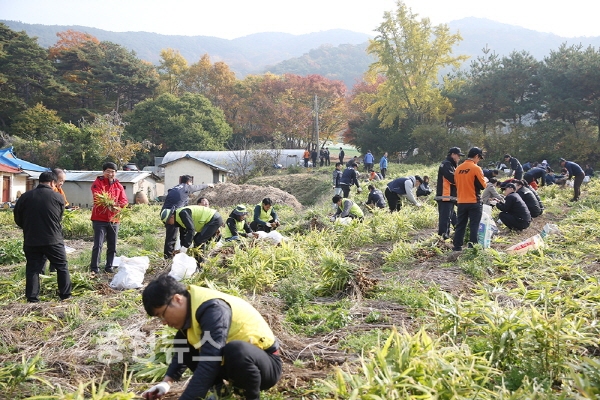 서산지역 기관장들 부석면 생강 수확 일손돕기 구슬땀