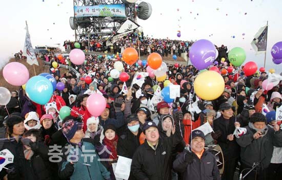 오전 7시 45분경, 붉고 고운 해가 떠오르자 식장산 해맞이 광장엔 시민들의 환호성과 감탄이 가득했고 일출과 동시에 참가자들이 날려 보낸 2009개의 오색풍선은 하늘을 향해 힘차게 솟아오르며 희망의 새해를 약속하는 듯했다.