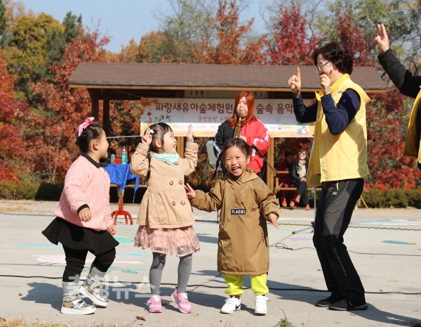 이번 행사는「가을·숲·동화」를 주제로 음악을 접목한 숲체험 교육기회를 제공, 유아들의 감성을 자극하고 전인적 성장을 도모하기 위해 마련됐다.