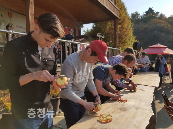 이날 축제에는 2만 3천여㎡ 사과밭과 와이너리 건물을 활용한 체험과 먹거리, 와인공장 투어 순으로 진행됐으며 주로 외국인들을 중심으로 사과 따기와 사과파이 만들기 사과잼 만들기, 와이너리 투어 등 다채로운 프로그램과 미국 출신들로 구성된 Bom City Band, 요들송 등 공연 프로그램이 관람객들의 눈과 귀를 사로잡았다.