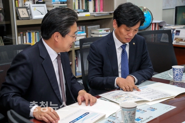 또한 오후에는 국회 예산결산특별위원회 소속인 조승래 의원(대전 유성갑)과 박완주 의원(천안을)을 만나 서해선 복선전철 건설사업과 당진~천안 고속도로 건설사업, 아산~삽교~대호호 농촌 용수이용체계 재편사업의 원활한 추진을 위해 당초 정부 예산안 보다 1,585억 원 많은 7,860억 원이 내년도 예산에 반영될 수 있도록 건의했다.