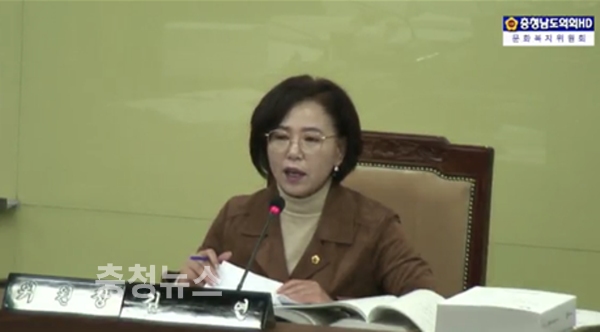 충남도의회 김연 문화복지위원장이 8일 행정사무감사에서 충남여성정책개발원의 무용성과 양승숙 원장의 무자격성에 대해 질타했다.