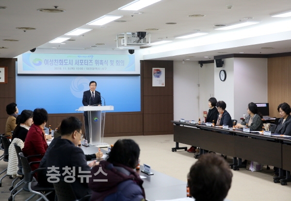 장종태 서구청장은 “지역정책과 발전과정에 남녀가 동등하게 참여하고 그 혜택이 모든 주민에게 고루 돌아가면서, 여성의 성장과 안전이 구현되도록 정책을 수행하는 여성친화도시 서구가 되기 위해서는 서포터즈의 역할이 중요하다“며 “서포터즈가 앞장서 행복동행 여성친화도시 서구로 거듭날 수 있도록 적극적인 활동을 해달라“고 당부했다.