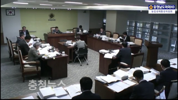 충남도의회 농경환위가 8일 기후환경국 소관 행정사무감사를 진행하고 있다.