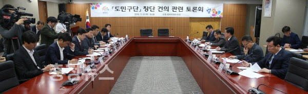 충남도는 8일 도청 중회의실에서 경찰청 선수모집 중단으로 해체 위기에 놓인 아산 무궁화축구단을 도민구단으로 전환하는 방안을 논의하기 위해 토론회를 개최했다.