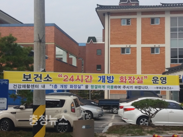 충남 부여군(군수 박정현)은 지역 주민의 화장실 이용 불편을 해소하기 위해 보건소 건강재활센터 내 1층 화장실을 24시간 개방하기로 했다.