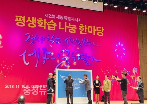 세종특별자치시 인재육성평생교육진흥원(이사장 이춘희 시장)이 10일 대평동복합커뮤니티센터에서 이강진 세종특별자치시 정무부시장, 서금택 세종시의회 의장, 최교진 세종시교육감을 비롯한 세종시민 약 5,000여명이 참여한 가운데 제2회 세종시 평생학습 나눔 한마당 축제를 성공적으로 개최했다.