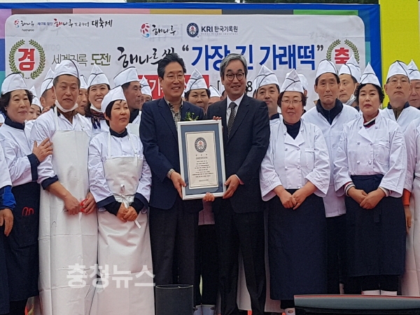 당진시에 따르면 50명의 사람들이 이날 자정부터 해나루쌀 4.5톤으로 가래떡 만들기를 시작해 같은 날 오전 7시 15분 길이 5,080미터, 지름 3㎝ 규모의 가래떡을 만들어 KRI한국기록원 공식 최고 기록에 올랐다.